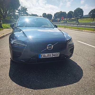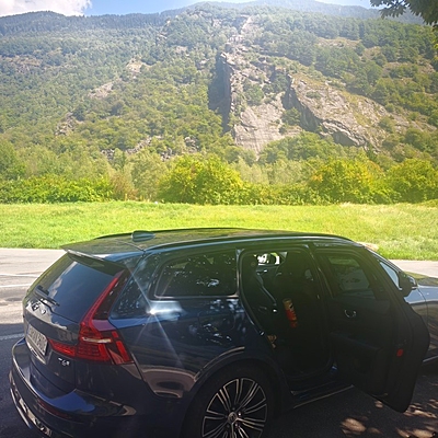 原本租的柯米克沒有了,換的車放不下兩個(gè)28寸箱子,換了三次,最后給了Volvo v60輕混旅行車,只有300多里程的新車。第二天開始習(xí)慣了,居然愛上了